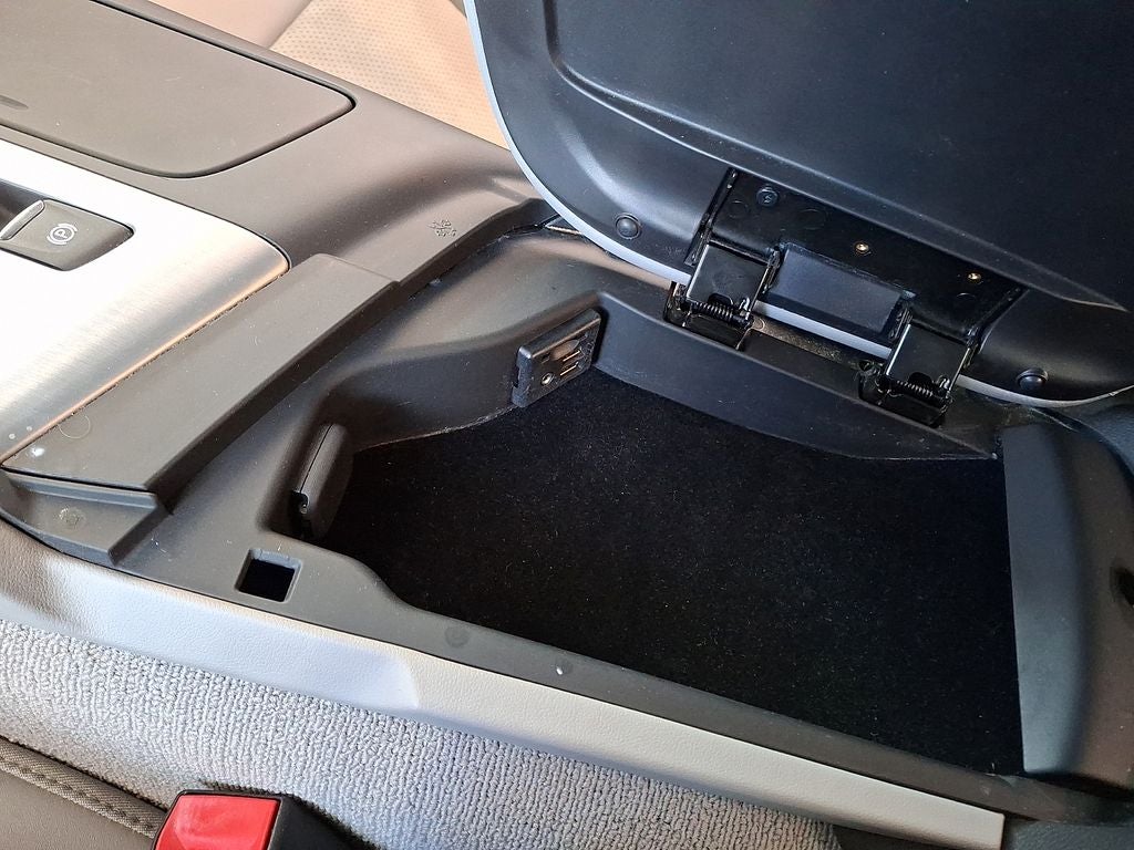- Storage, with electric locking glovebox, behind screen storage, center console and rear compartment with cover