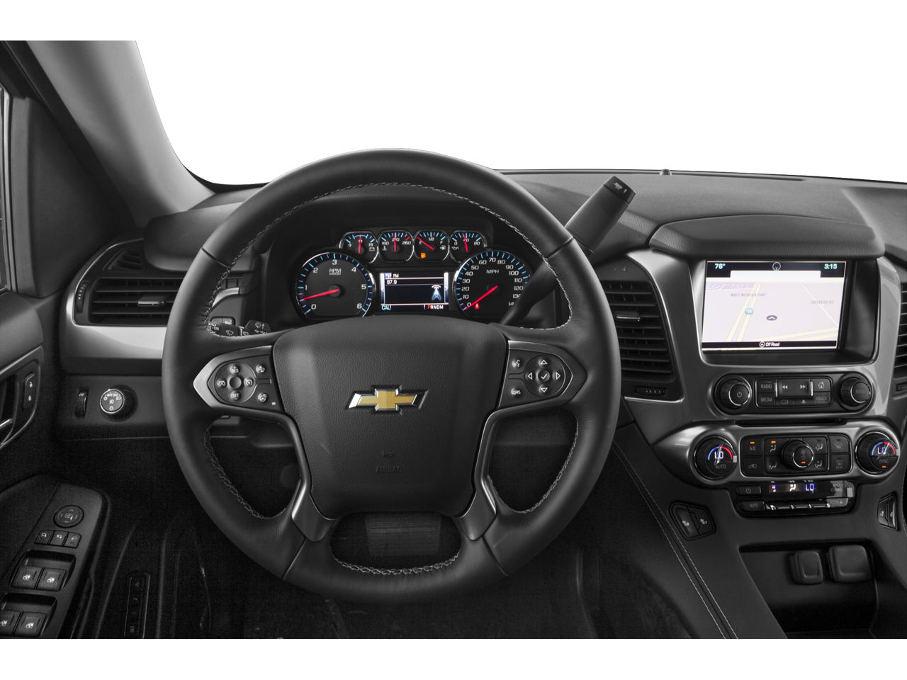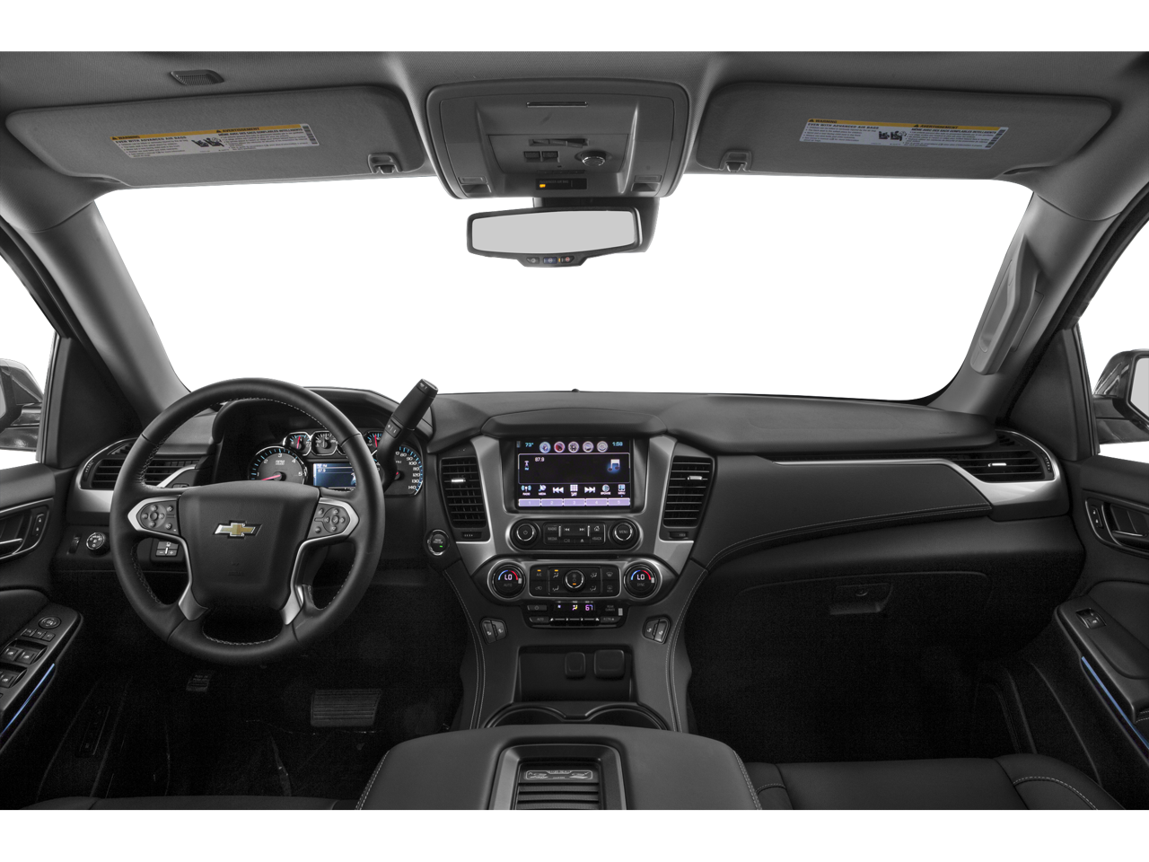 4WD, Black Leather, 18 x 8.5 Aluminum Wheels, 2nd Row 60/40 Split-Folding Manual Bench, 2nd Row Pwr Release 60/40 Split Folding Bench Seat, 3.08 Rear Axle Ratio, 3rd Row 60/40 Power Fold Split-Bench, 3rd Row Manual 60/40 Split-Folding Fold Flat Bench, 3rd row seats: split-bench, 4-Wheel Disc Brakes, 5 12-Volt Auxiliary Power Outlets, 9 Speakers, ABS brakes, Adjustable pedals, Air Conditioning, Alloy wheels, AM/FM radio: SiriusXM, Auto-Dimming Inside Rear-View Mirror, Auto-dimming Rear-View mirror, Automatic temperature control, Bluetooth® For Phone, Bose Premium 9-Speaker System, Brake assist, Bumpers: body-color, CD player, Compass, Delay-off headlights, Driver door bin, Driver Inboard & Front Passenger Airbags, Driver vanity mirror, Dual front impact airbags, Dual front side impact airbags, Electronic Stability Control, Emergency communication system: OnStar Directions & Connections, Extended-Range Remote Keyless Entry, Exterior Parking Camera Rear, Floor Console, Fog Lamps, Forward Collision Alert, Front & Rear Parking Assist, Front anti-roll bar, Front Bucket Seats, Front Center Armrest, Front dual zone A/C, Front Heated Reclining Bucket Seats, Front reading lights, Front wheel independent suspension, Fully automatic headlights, Garage door transmitter, Hands Free Power Liftgate, Heated 2nd Row Seats, Heated door mirrors, Heated front seats, Heated Leather Wrapped Steering Wheel, Heavy-Duty Rear Locking Differential, Illuminated entry, Keyless Start Switch, Lane Departure Warning & Safety Alert Seat, Leather-Appointed Seat Trim, License Plate Front Mounting Package, Low tire pressure warning, Luxury Package, Memory seat, Memory Settings, Occupant sensing airbag, Outside temperature display, Overhead airbag, Overhead console, Panic alarm, Passenger door bin, Passenger vanity mirror, Passive Entry System, Pedal memory, Power Adjustable Pedals, Power door mirrors, Power driver seat, Power Liftgate, Power passenger seat, Power steering, Power Sunroof, Power Tilt & Telescopic Steering Column w/Memory, Power windows, Power-Folding Heated Outside Mirrors, Preferred Equipment Group 1LT, Premium audio system: Chevrolet MyLink, Premium Smooth Ride Suspension Package, Radio: Chevrolet MyLink AM/FM Stereo w/CD Player, Rain sensing wipers, Rear air conditioning, Rear anti-roll bar, Rear Cross-Traffic Alert, Rear Park Assist w/Audible Warning, Rear reading lights, Rear Seat Blu-Ray/DVD Entertainment System, Rear seat center armrest, Rear window defroster, Rear window wiper, Remote keyless entry, Roof rack: rails only, Security system, Side Blind Zone Alert w/Lane Change Alert, Single-Slot CD/MP3 Player, SiriusXM Satellite Radio, Speed control, Speed-sensing steering, Split folding rear seat, Spoiler, Steering wheel mounted audio controls, Tachometer, Telescoping steering wheel, Tilt steering wheel, Traction control, Trip computer, Universal Home Remote, Variably intermittent wipers, Voltmeter, Wireless Charging, 4WD, Black Leather.