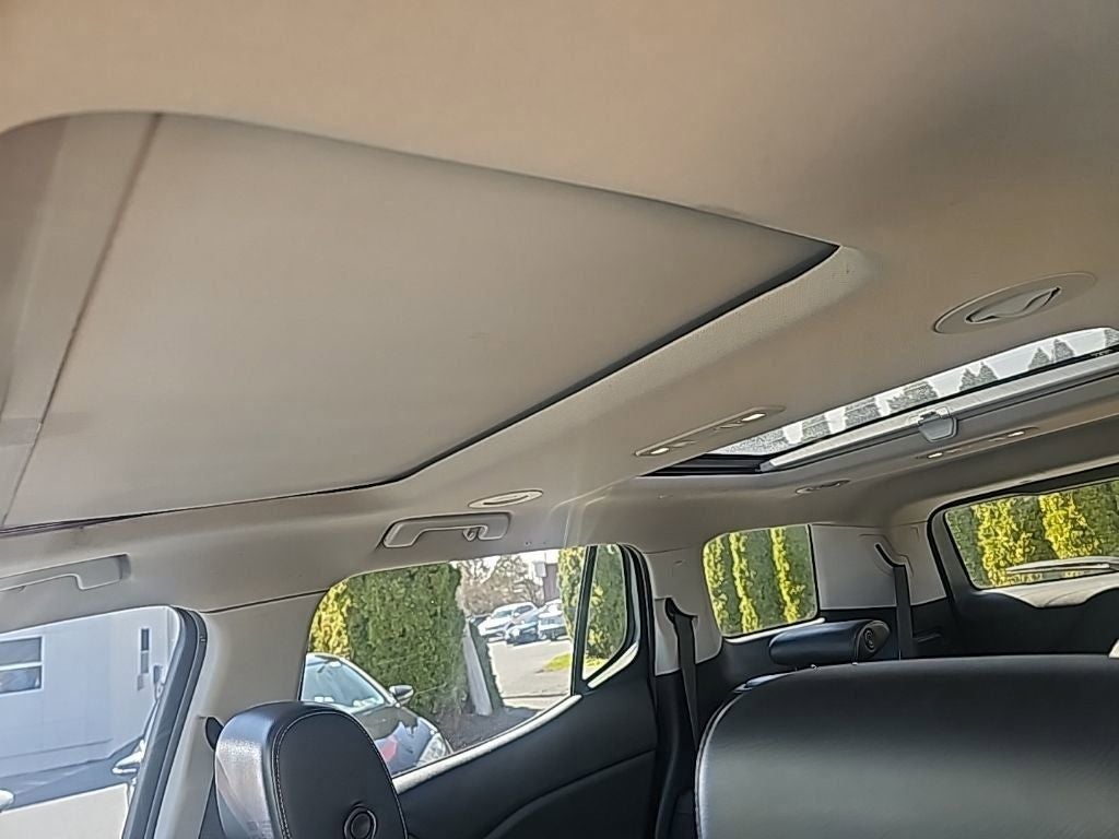 AWD, Jet Black Leather, 155 Amp Alternator, 170 Amp Alternator, 18 x 7.5 Aluminum (4) Wheels, 3.16 Axle Ratio, 3rd Row All-Weather Floor Liner (LPO), 3rd row seats: split-bench, 4-Wheel Disc Brakes, 6-Passenger (2-2-2 Seating Configuration), 8 Speakers, ABS brakes, Air Conditioning, All-Weather Floor Liner (LPO), Alloy wheels, AM/FM radio: SiriusXM, Apple CarPlay/Android Auto, Auto-dimming door mirrors, Auto-dimming Rear-View mirror, Automatic temperature control, Brake assist, Bumpers: body-color, Compass, Delay-off headlights, Driver door bin, Driver vanity mirror, Dual front impact airbags, Dual front side impact airbags, Dual SkyScape 2-Panel Power Sunroof, Electronic Stability Control, Emergency communication system: OnStar Guidance, Exterior Parking Camera Rear, Floor Liner Package (LPO), Four wheel independent suspension, Front anti-roll bar, Front Bucket Seats, Front Center Armrest, Front dual zone A/C, Front fog lights, Front reading lights, Fully automatic headlights, Garage door transmitter, Heated door mirrors, Heated front seats, Heavy Duty Cooling System, Illuminated entry, Knee airbag, Low tire pressure warning, Occupant sensing airbag, Outside temperature display, Overhead airbag, Overhead console, Panic alarm, Passenger door bin, Passenger vanity mirror, Perforated Leather-Appointed Seat Trim, Power door mirrors, Power driver seat, Power Liftgate, Power passenger seat, Power steering, Power windows, Preferred Equipment Group 4SA, Premium audio system: IntelliLink, Radio data system, Radio: AM/FM 8 Diagonal Color Touch Navigation, Radio: AM/FM 8 Diagonal Color Touch Screen, Rear air conditioning, Rear anti-roll bar, Rear reading lights, Rear window defroster, Rear window wiper, Remote keyless entry, Roof rack: rails only, Security system, SiriusXM Satellite Radio, Speed control, Speed-sensing steering, Spoiler, Steering wheel mounted audio controls, Tachometer, Telescoping steering wheel, Tilt steering wheel, Traction control, Trailering Package, Trip computer, Variably intermittent wipers, Voltmeter, AWD, Jet Black Leather.