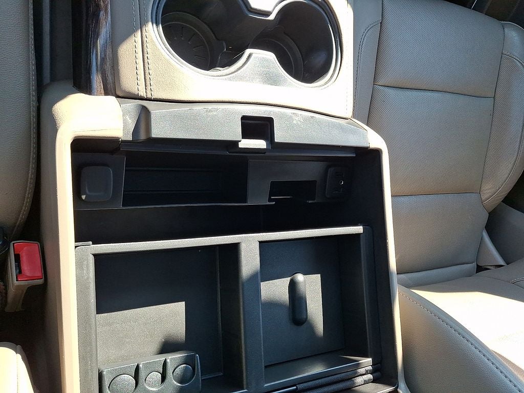 - Console, floor with storage area, cup holders