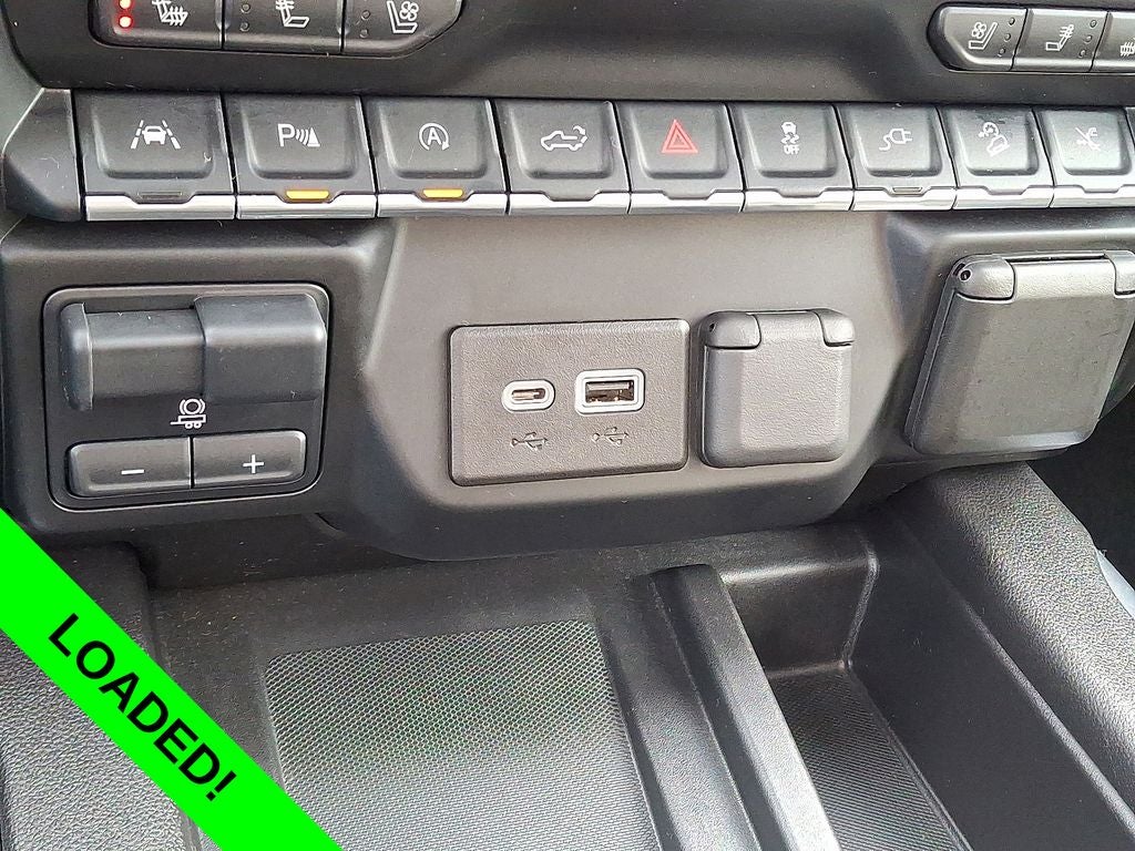 10-Speed Automatic, 4WD, Jet Black Leather, 10-Way Power Driver Seat Adjuster w/Lumbar, 10-Way Power Passenger Seat Adjuster w/Lumbar, 12-Volt Rear Auxiliary Power Outlet, 120-Volt Bed Mounted Power Outlet, 120-Volt Instrument Panel Power Outlet, 170 Amp Alternator, 2 USB Ports, 2 USB Ports (1st Row), 220 Amp Alternator, 3.23 Rear Axle Ratio, 4-Wheel Disc Brakes, 4G LTE Wi-Fi Hotspot Capable, 7 Speakers, ABS brakes, Adaptive Cruise Control - Camera, Adaptive Ride Control Suspension, Adaptive suspension, Air Conditioning, All-Weather Floor Liner (LPO), Alloy wheels, AM/FM radio: SiriusXM with 360L, Apple CarPlay/Android Auto, Auto-dimming door mirrors, Auto-dimming Rear-View mirror, Automatic Emergency Braking, Automatic temperature control, Auxiliary External Transmission Oil Cooler, Bed View Camera, Brake assist, Bumpers: body-color, Chrome Recovery Hooks, Chrome Wheel To Wheel Assist Steps, Color-Keyed Carpeting Floor Covering, Compass, Console-Mounted Safe (LPO), Deep-Tinted Glass, Delay-off headlights, Denali Ultimate Package, Driver Alert Package I, Driver Alert Package II, Driver door bin, Driver Memory, Driver vanity mirror, Dual front impact airbags, Dual front side impact airbags, Electric Rear-Window Defogger, Electrical Lock Control Steering Column, Electronic Stability Control, Engine Block Heater, Floor-Mounted Center Console, Following Distance Indicator, Forge Perforated Leather-Appointed Seat Trim, Forward Collision Alert, Front & Rear Black Molded Splash Guards (LPO), Front anti-roll bar, Front Bucket Seats, Front Center Armrest, Front dual zone A/C, Front fog lights, Front License Plate Kit, Front Pedestrian Braking, Front reading lights, Front wheel independent suspension, Fully automatic headlights, Garage door transmitter, Genuine wood console insert, Genuine wood door panel insert, GMC Connected Access Capable, GMC MultiPro Power Steps (DISC), GMC Protection Package (LPO), HD Radio, HD Rear Vision Camera, HD Surround Vision w/2 Trailer View Camera Provisions, Heated 2nd Row Outboard Seats, Heated door mirrors, Heated Driver & Front Outboard Passenger Seating, Heated front seats, Heated rear seats, Heated steering wheel, Heavy-Duty Rear Locking Differential, High-Capacity Air Filter, Hill Descent Control, Hitch Guidance, Hitch Guidance w/Hitch View, Illuminated entry, In-Vehicle Trailering App, Integrated Trailer Brake Controller, IntelliBeam Automatic High Beam On/Off, Keyless Open & Start, Lane Change Alert w/Side Blind Zone Alert, Lane Keep Assist w/Lane Departure Warning, LED Cargo Area Lighting, Low tire pressure warning, Manual Tilt-Wheel & Telescoping Steering Column, Memory seat, Multicolor 15 Diagonal Head-Up Display, Navigation System, Occupant sensing airbag, OnStar & GMC Connected Services Capable, Outside temperature display, Overhead airbag, Overhead console, Panic alarm, Passenger door bin, Passenger vanity mirror, Power Door Locks, Power door mirrors, Power driver seat, Power Front Passenger Windows w/Express Up/Down, Power