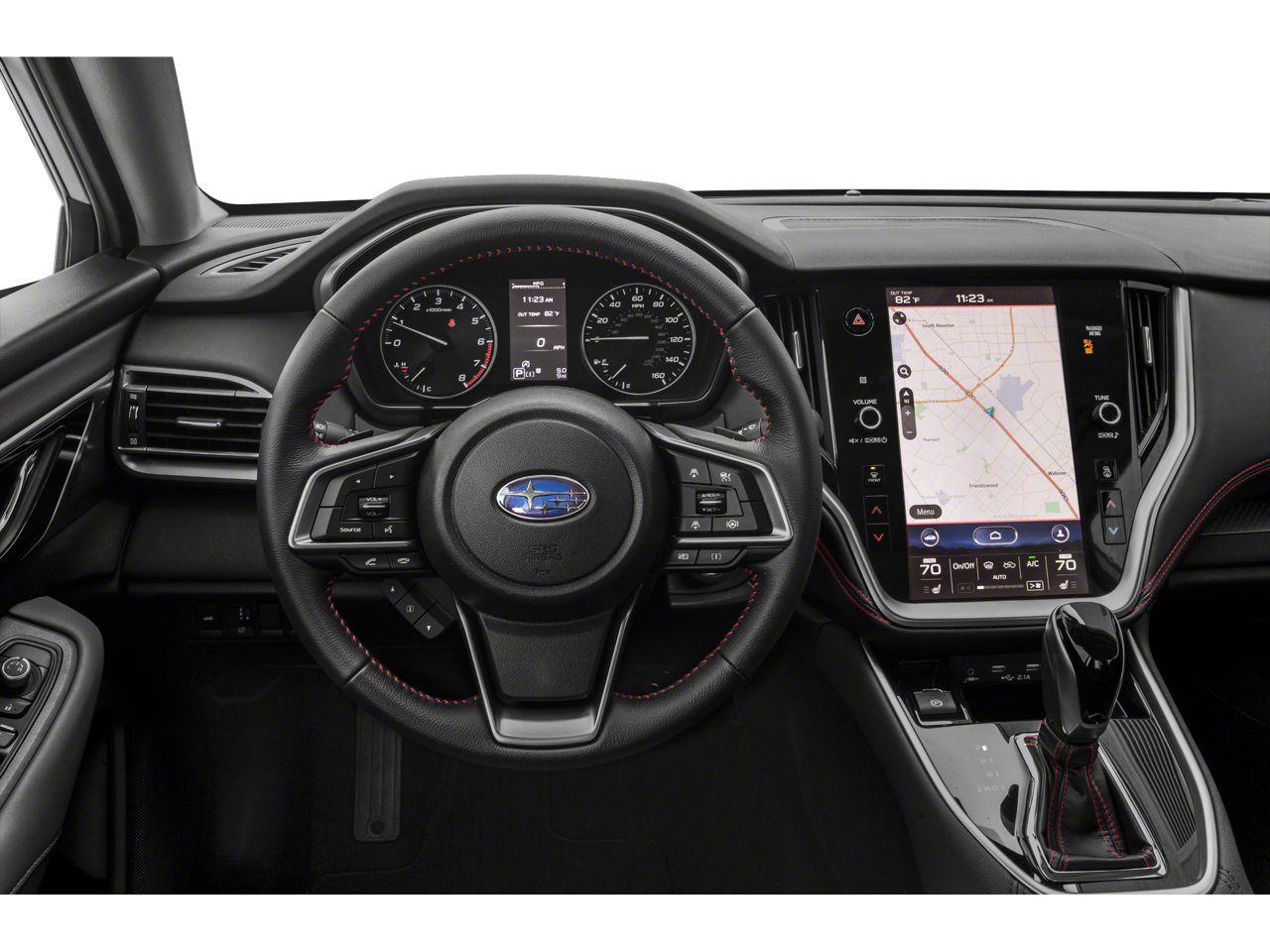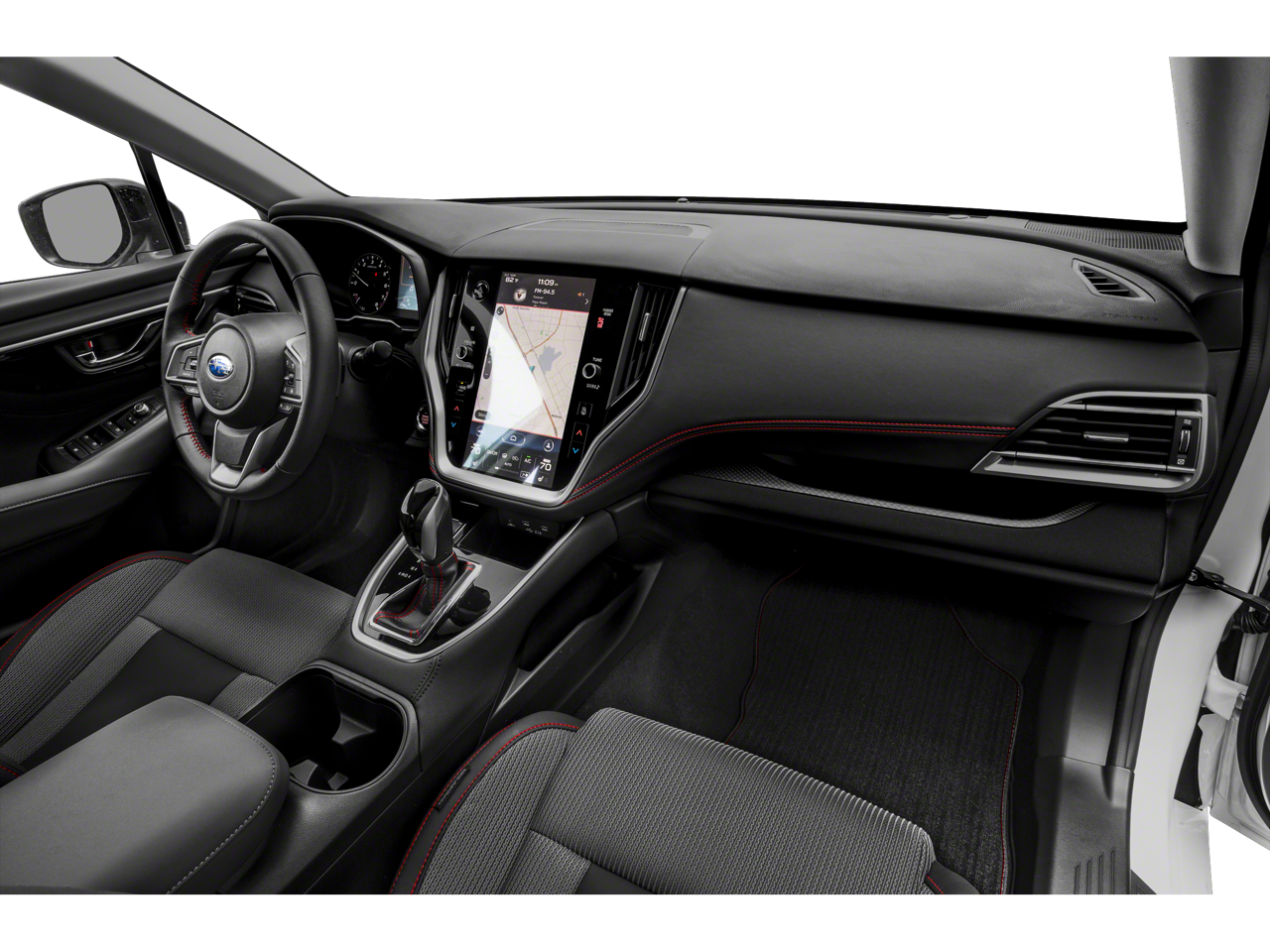 Inside, the spacious and well-appointed cabin offers a premium driving experience. Sink into the comfortable, supportive front seats, enhanced with red stitching, and enjoy the convenience of dual-zone automatic climate control and a power driver's seat. The Subaru STARLINK infotainment system, with its large 11.6-inch touchscreen display, provides seamless connectivity and intuitive navigation, keeping you connected and entertained.