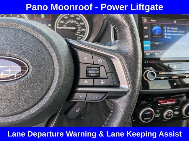 Stepping inside, you'll be surrounded by premium Perforated Leather-Trimmed Upholstery, a Heated Steering Wheel, and Heated Front Bucket Seats, ensuring your comfort no matter the weather. The Subaru STARLINK 8.0 Multimedia Navigation System with voice-activated controls and smartphone integration keeps you connected and entertained on the go.