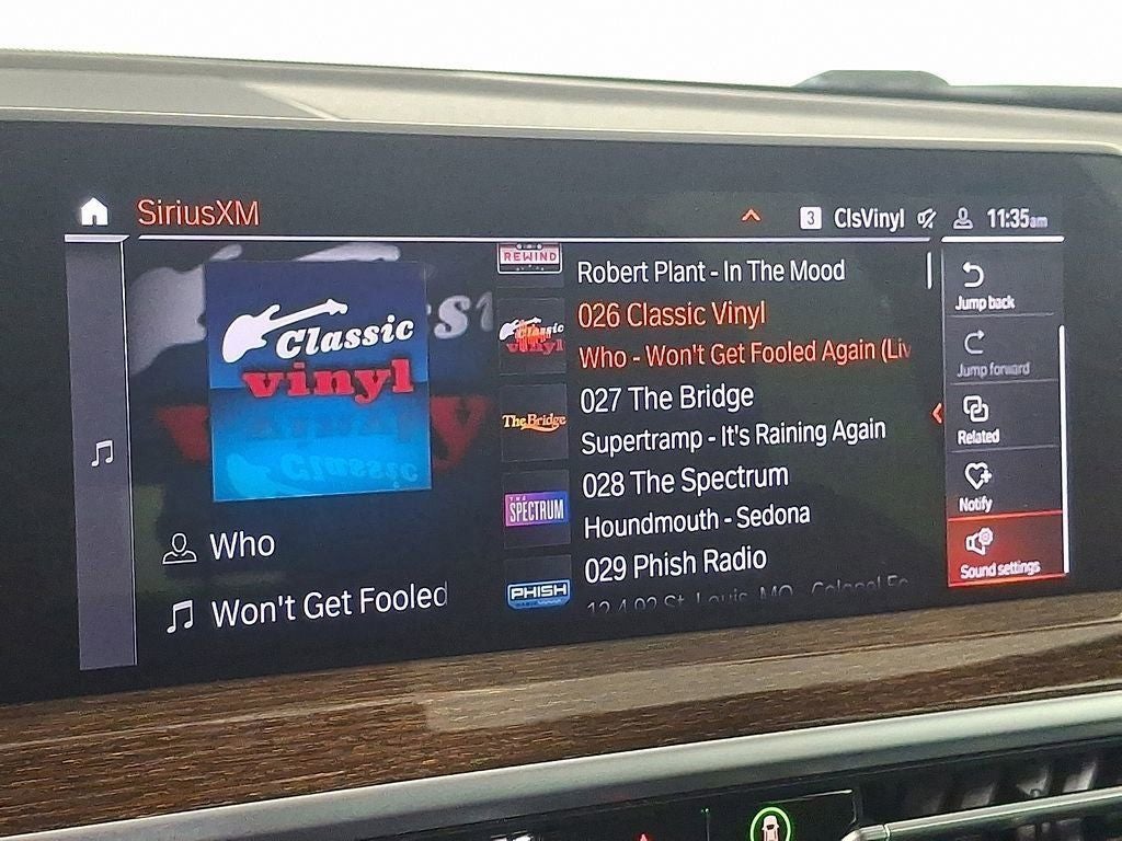 8-Speed Automatic Sport, 12 Speakers, 3.385 Axle Ratio, 4-Wheel Disc Brakes, ABS brakes, Air Conditioning, Alloy wheels, AM/FM Radio, AM/FM radio: SiriusXM with 360L, Apple CarPlay & Android Auto Compatibility, Auto High-beam Headlights, Auto-dimming door mirrors, Auto-dimming Rear-View mirror, Automatic temperature control, BMW Assist eCall, BMW TeleServices, Brake assist, Bumpers: body-color, Comfort Access Keyless Entry, Connected Package Pro, ConnectedDrive Services, Convenience Package, Delay-off headlights, Driver door bin, Driver vanity mirror, Dual front impact airbags, Dual front side impact airbags, Electronic Stability Control, Emergency communication system: BMW Assist eCall, Enhanced Bluetooth®, Exterior Parking Camera Rear, Four wheel independent suspension, Front anti-roll bar, Front Bucket Seats, Front Center Armrest, Front dual zone A/C, Front reading lights, Fully automatic headlights, Garage door transmitter, Genuine wood dashboard insert, Genuine wood door panel insert, Heated door mirrors, Heated Front Seats, Heated Steering Wheel, Hi-Fi Sound System, Illuminated entry, Knee airbag, Low tire pressure warning, Lumbar Support, Memory seat, Navigation, Navigation System, Occupant sensing airbag, Outside temperature display, Overhead airbag, Panic alarm, Panoramic Moonroof, Passenger door bin, Passenger vanity mirror, Perforated SensaTec Upholstery, Power door mirrors, Power driver seat, Power Front Seats, Power Liftgate, Power passenger seat, Power steering, Power windows, Radio data system, Rain sensing wipers, Rear air conditioning, Rear anti-roll bar, Rear reading lights, Rear seat center armrest, Rear window defroster, Rear window wiper, Remote Engine Start, Remote keyless entry, Roof rack: rails only, Security system, SiriusXM w/360L, Speed control, Speed-sensing steering, Speed-Sensitive Wipers, Split folding rear seat, Spoiler, Sport Seats, Sport steering wheel, Steering wheel mounted audio controls, Tachometer, Telescoping steering wheel, Tilt steering wheel, Traction control, Trip computer, Turn signal indicator mirrors, Variably intermittent wipers, Wheels: 19 x 7.5 Y-Spoke (Style 693), WiFi Hotspot, 8-Speed Automatic Sport.