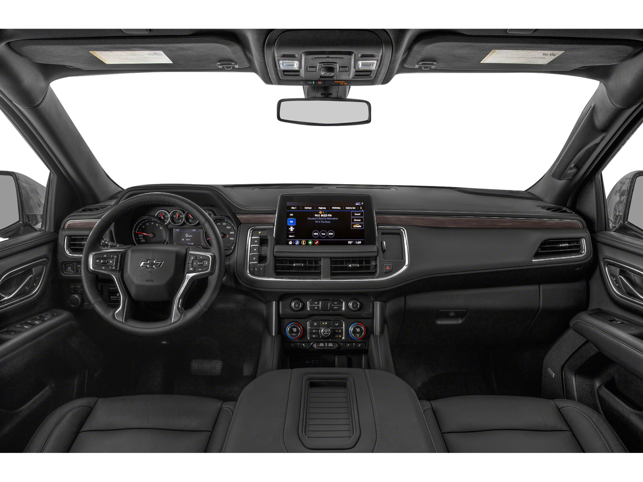 4WD, Black Leather, 10-Way Power Driver & Passenger Seat Adjusters, 1st & 2nd Row Color-Keyed Carpeted Floor Mats, 2-Speed Active Electronic AutoTrac Transfer Case, 2nd Row Pwr Release 60/40 Split-Folding Bench Seat, 3.23 Rear Axle Ratio, 3rd Row 60/40 Power-Folding Split-Bench Seat, 3rd row seats: split-bench, 4-Wheel Disc Brakes, 9 Speakers, ABS brakes, Air Conditioning, Alloy wheels, AM/FM radio: SiriusXM with 360L, Apple CarPlay/Android Auto, Auto High-beam Headlights, Auto-Dimming Inside Rear-View Mirror, Auto-dimming Rear-View mirror, Automatic Stop/Start, Automatic temperature control, Black Tubular Assist Steps, Bose 9-Speaker Stereo Audio System Feature, Brake assist, Bright Front & Rear Door Sill Plates, Bumpers: body-color, Cat-Back Performance Exhaust (LPO), Color-Keyed Carpeting Floor Covering, Compass, Delay-off headlights, Driver & Front Outboard Passenger Airbags, Driver Alert Package, Driver door bin, Driver vanity mirror, Dual front impact airbags, Dual front side impact airbags, Dual-Pane Power Panoramic Sunroof, Electronic Stability Control, Emergency communication system: OnStar and Chevrolet connected services capable, Enhanced Driver Information Center, Floor Console w/Storage Area, Four wheel independent suspension, Front anti-roll bar, Front Bucket Seats, Front Center Armrest, Front dual zone A/C, Front High-Approach Angle Fascia, Front High-Back Reclining Bucket Seats, Front reading lights, Fully automatic headlights, Garage door transmitter, Hands-Free Rear Power Programmable Liftgate, HD Surround Vision, Heated 2nd Row Outboard Seats, Heated door mirrors, Heated Driver & Front Passenger Seats, Heated front seats, Heated Steering Wheel, Hill Descent Control, Illuminated entry, Infotainment Display, Lane Change Alert w/Side Blind Zone Alert, Leather steering wheel, Leather-Appointed Seat Trim, Leather-Wrapped Steering Wheel, LED Daytime Running Lamps, License Plate Front Mounting Package, Low tire pressure warning, Luxury Package, Memory seat, Memory Settings, Memory Settings for Driver, Navigation System, Not Equipped w/Front & Rear Park Assist, Not Equipped w/Steering Column Lock, Occupant sensing airbag, Outside Heated Power-Adjustable Mirrors, Outside temperature display, Overhead airbag, Overhead console, Panic alarm, Passenger door bin, Passenger vanity mirror, Power door mirrors, Power driver seat, Power Liftgate, Power passenger seat, Power Release 2nd Row Bucket Seats, Power steering, Power Tilt & Telescopic Steering Column, Power windows, Preferred Equipment Group 2Z7, Premium audio system: Chevrolet Infotainment System 3, Premium Smooth Ride Suspension, Radio: Chevrolet Infotainment 3 Premium System, Rain sensing wipers, Rear air conditioning, Rear anti-roll bar, Rear Cross Traffic Alert, Rear Pedestrian Alert, Rear reading lights, Rear seat center armrest, Rear window defroster, Rear window wiper, Red Horizontal-Mounted Recovery Hooks, Remote keyless entry, Remote Start, Roof rack: rails only, Security system, SiriusXM Radio w/360L, Speed control, Speed-sensing steering, Split folding rear seat, Spoiler, Start/Stop System Disable Button, Steering wheel mounted audio controls, Tachometer, Telescoping steering wheel, Tilt steering wheel, Traction control, Trip computer, Universal Home Remote, Variably intermittent wipers, Voltmeter, Wheels: 20 x 9 Machined Aluminum, Wireless Charging, 4WD, Black Leather.