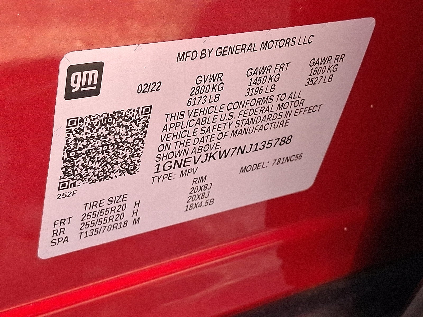 - Tires, P255/55R20 all-season blackwall