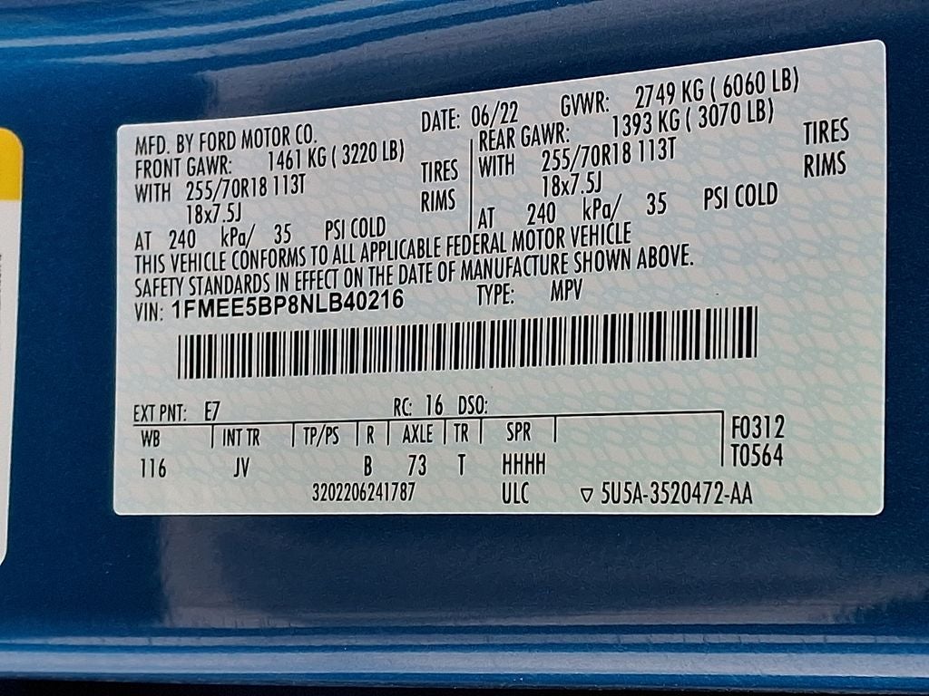 - Tires: P255/70R18 A/T -inc: full size spare tire w/TPMS