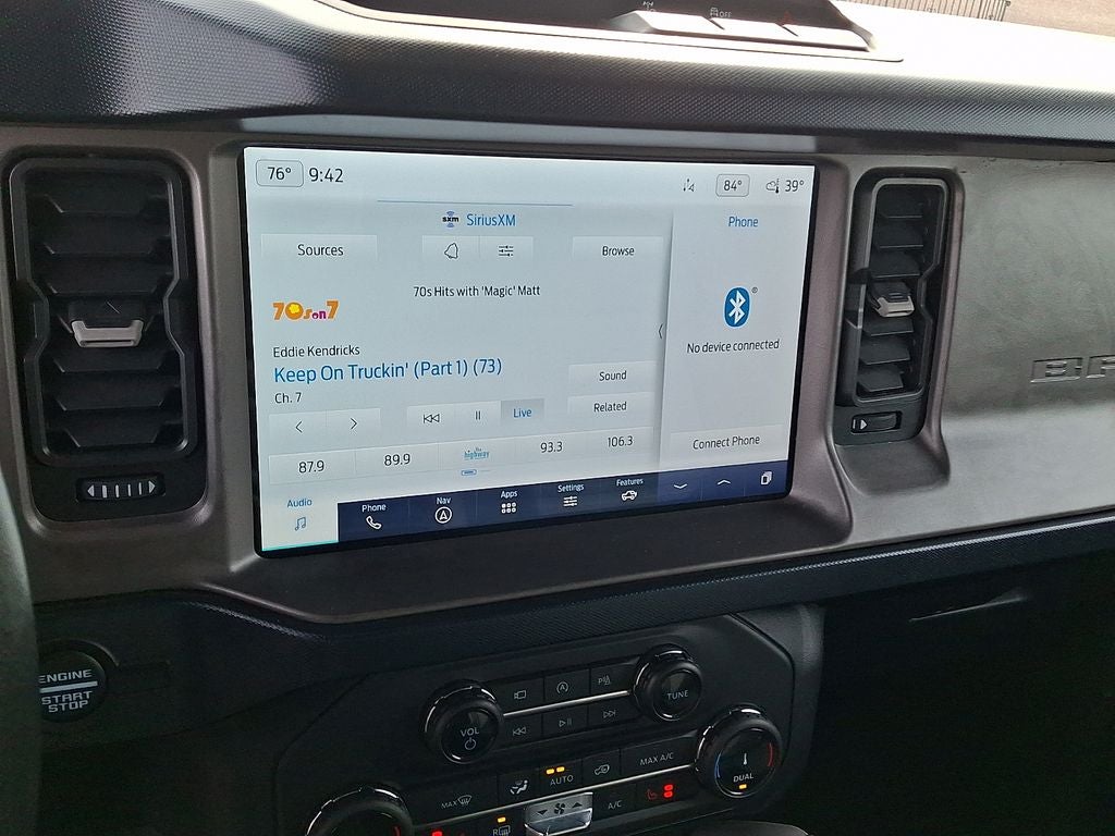 Immerse yourself in the connected technology of the Bronco Outer Banks, featuring a state-of-the-art infotainment system, navigation, and a 360-degree camera for enhanced awareness and control. Enjoy the comfort of heated front seats, dual-zone automatic climate control, and a premium sound system that will elevate your driving experience.