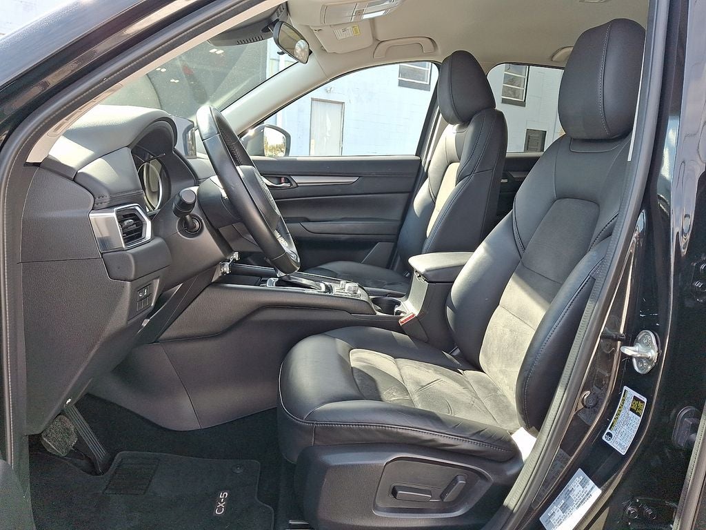 The CX-5's sleek and modern interior, complete with leatherette seat trim and a leather-wrapped shift knob, creates a refined and sophisticated atmosphere. With ample cargo space and a split-folding rear seat, this SUV offers the versatility to accommodate your lifestyle needs.