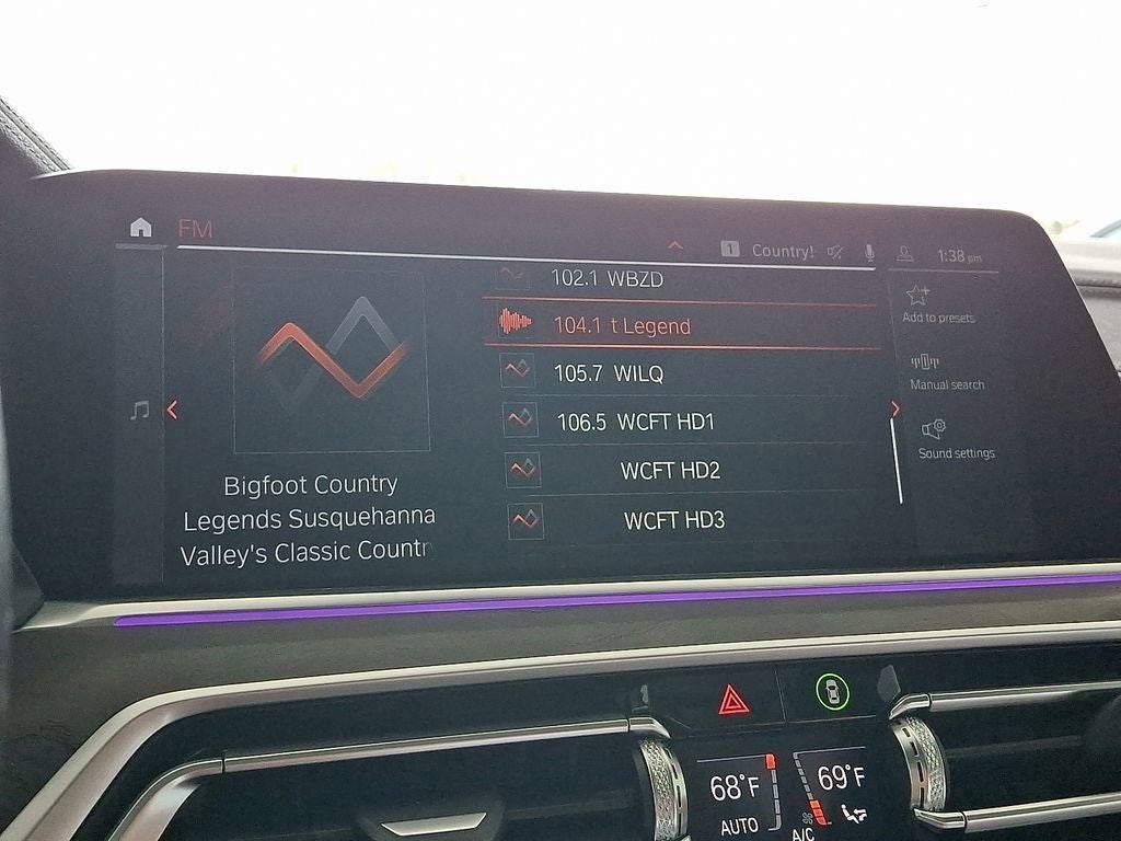 Cognac Cognac Sensafin, 10 Speakers, 3.39 Axle Ratio, 4-Wheel Disc Brakes, 4-Zone Automatic Climate Control, ABS brakes, Active Park Distance Control, Air Conditioning, Alloy wheels, AM/FM radio: SiriusXM with 360L, AM/FM Stereo, Auto High-beam Headlights, Auto tilt-away steering wheel, Auto-dimming door mirrors, Auto-dimming Rear-View mirror, Automatic temperature control, BMW Assist eCall, BMW TeleServices, Brake assist, Bumpers: body-color, Compass, Connected Package Pro, ConnectedDrive Services, Delay-off headlights, Drive Recorder, Driver door bin, Driver Lumbar Support Only (DISC), Driver vanity mirror, Dual front impact airbags, Dual front side impact airbags, Electronic Stability Control, Emergency communication system: BMW Assist eCall, Enhanced USB & Bluetooth® w/Smartphone Integration, Exterior Parking Camera Rear, Four wheel independent suspension, Front anti-roll bar, Front Bucket Seats, Front Center Armrest, Front dual zone A/C, Front reading lights, Fully automatic headlights, Garage door transmitter, Genuine wood console insert, Genuine wood dashboard insert, Genuine wood door panel insert, Head restraints memory, Head-Up Display, Heated door mirrors, Heated Front Seats, Heated front seats, Heated Front Seats w/Armrests & Steering Wheel, Hi-Fi Sound System, Illuminated entry, Knee airbag, Leather Shift Knob, Leather steering wheel, Live Cockpit Pro w/Navigation, Low tire pressure warning, Lumbar Support, Memory seat, Navigation System, Occupant sensing airbag, Outside temperature display, Overhead airbag, Panic alarm, Parking Assistant Plus, Passenger door bin, Passenger vanity mirror, Power adjustable front head restraints, Power door mirrors, Power driver seat, Power Front Seats, Power moonroof, Power passenger seat, Power steering, Power windows, Radio data system, Rain sensing wipers, Rear anti-roll bar, Rear reading lights, Rear seat center armrest, Rear window defroster, Rear window wiper, Rear-View Camera, Remote Engine Start, Remote keyless entry, Security system, Sensafin Upholstery, SiriusXM Satellite Radio, Speed control, Speed-sensing steering, Speed-Sensitive Wipers, Split folding rear seat, Spoiler, Sport Seats, Sport steering wheel, Steering wheel mounted audio controls, Surround View w/3D View, Tachometer, Telescoping steering wheel, Tilt steering wheel, Traction control, Trip computer, Turn signal indicator mirrors, Variably intermittent wipers, Wheels: 19 x 9 V-Spoke, WiFi Hotspot, Wireless Charging, Cognac Cognac Sensafin.