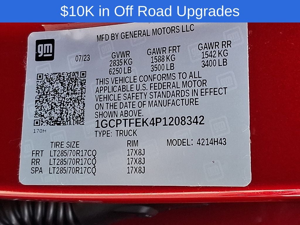 Turn heads on the street and dominate the trail in this 2023 Chevy Colorado ZR2, a purpose-built midsize truck engineered for serious off-road performance. With just 35,000 miles and over $10,000 invested in premium off-road upgrades, this ZR2 is trail-ready and adventure-approved.