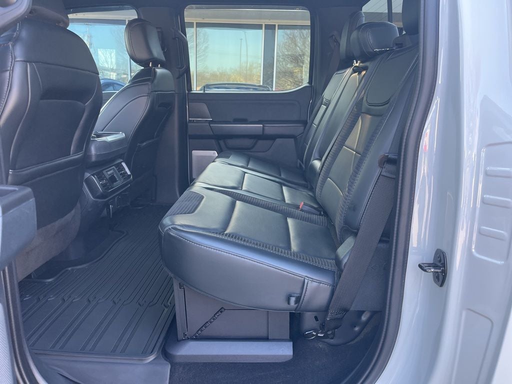 4WD, 17 Cast Aluminum Wheels, 17 Forged Aluminum Bead-Lock Capable Wheels, 18 Speakers, 4-Wheel Disc Brakes, ABS brakes, Adaptive suspension, Adjustable pedals, Air Conditioning, Alloy wheels, AM/FM radio: SiriusXM with 360L, Auto High-beam Headlights, Auto Start-Stop Removal (DISC), Auto tilt-away steering wheel, Auto-dimming door mirrors, Auto-dimming Rear-View mirror, Automatic temperature control, Brake assist, Bumpers: body-color, Compass, Delay-off headlights, Driver door bin, Driver vanity mirror, Dual front impact airbags, Dual front side impact airbags, Electronic Locking w/4.10 Axle Ratio, Electronic Stability Control, Emergency communication system, Equipment Group 801A Standard, Exterior Parking Camera Rear, Front anti-roll bar, Front Bucket Seats, Front Center Armrest, Front dual zone A/C, Front fog lights, Front reading lights, Front wheel independent suspension, Fully automatic headlights, Garage door transmitter, GVWR: 7,300 lbs Payload Package, Heated door mirrors, Heated front seats, Heated rear seats, Heated steering wheel, Illuminated entry, Inclination/Intrusion Sensor Removal, Lane Departure Warning System, Leather Trim Seats w/Heated 2nd Row, Low tire pressure warning, Memory seat, Navigation system: Connected Navigation, Occupant sensing airbag, Outside temperature display, Overhead airbag, Overhead console, Panic alarm, Partitioned Lockable Fold-Flat Storage, Passenger door bin, Passenger vanity mirror, Pedal memory, Power door mirrors, Power driver seat, Power passenger seat, Power steering, Power windows, Pro Power Onboard - 2KW, Radio data system, Radio: B&O Unleashed Sound System by Bang & Olufsen, Rain sensing wipers, Raptor Carbon Fiber Package, Rear reading lights, Rear step bumper, Rear window defroster, Remote keyless entry, Security system, Speed control, Speed-sensing steering, Split folding rear seat, Steering Wheel Heat Removal (DISC), Steering wheel memory, Steering wheel mounted audio controls, SYNC 4 w/Enhanced Voice Recognition, Tachometer, Telescoping steering wheel, Tilt steering wheel, Tough Bed Spray-In Bedliner, Traction control, Trip computer, Turn signal indicator mirrors, Variably intermittent wipers, Ventilated front seats, 4WD.