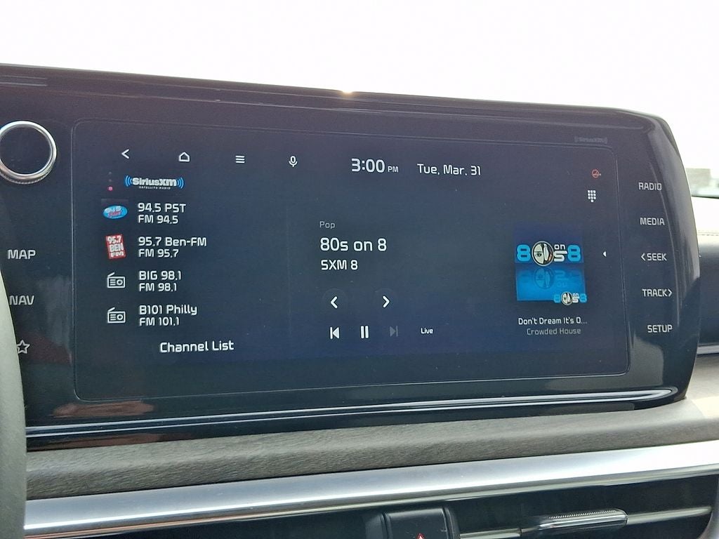 The interior of this K5 EX is thoughtfully designed to provide the ultimate in comfort and convenience. Sink into the SynTex-trimmed, heated and ventilated front seats, and take advantage of the smart key with push-button start, dual-zone automatic climate control, and the advanced infotainment system with Apple CarPlay and Android Auto integration.