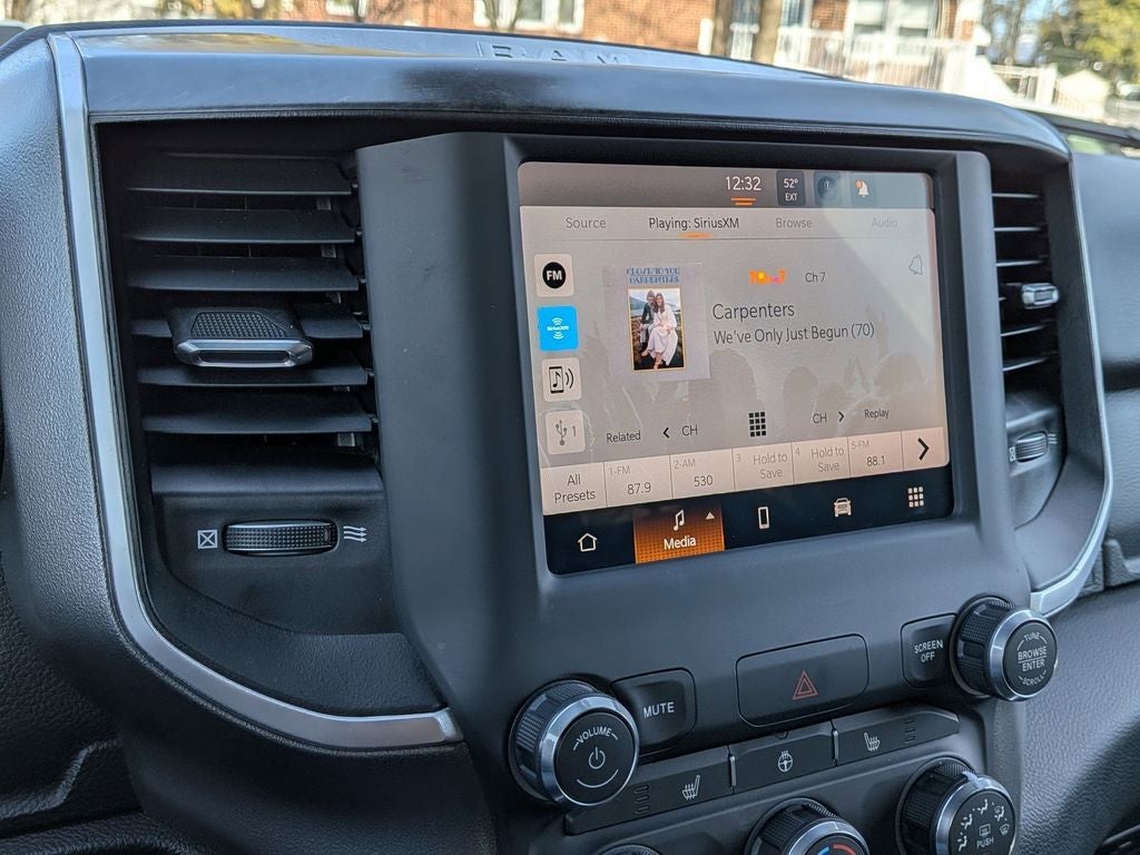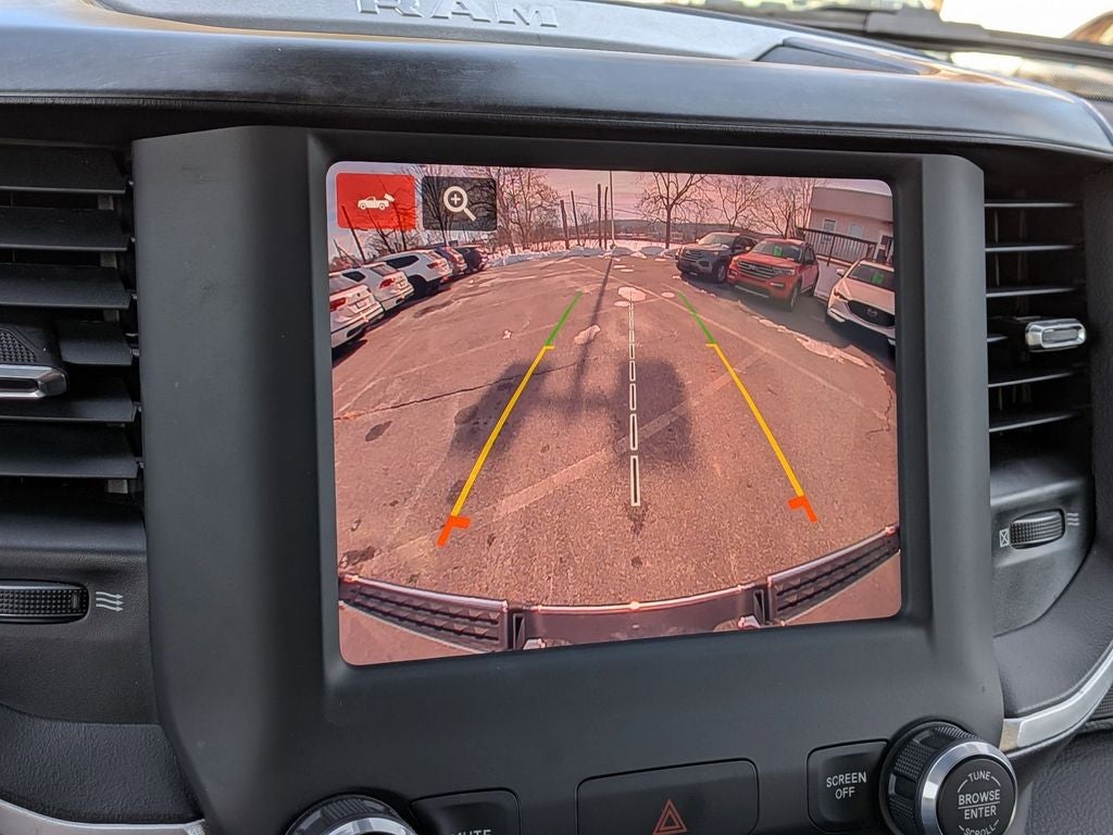 This one-owner truck also boasts a host of advanced safety and technology features, including an auto-dimming exterior driver's mirror, 4G LTE Wi-Fi hotspot, and in-floor storage bins for your gear. The Big Horn/Lone Star package adds even more value, with chrome exterior accents, fog lamps, and a class IV receiver hitch.