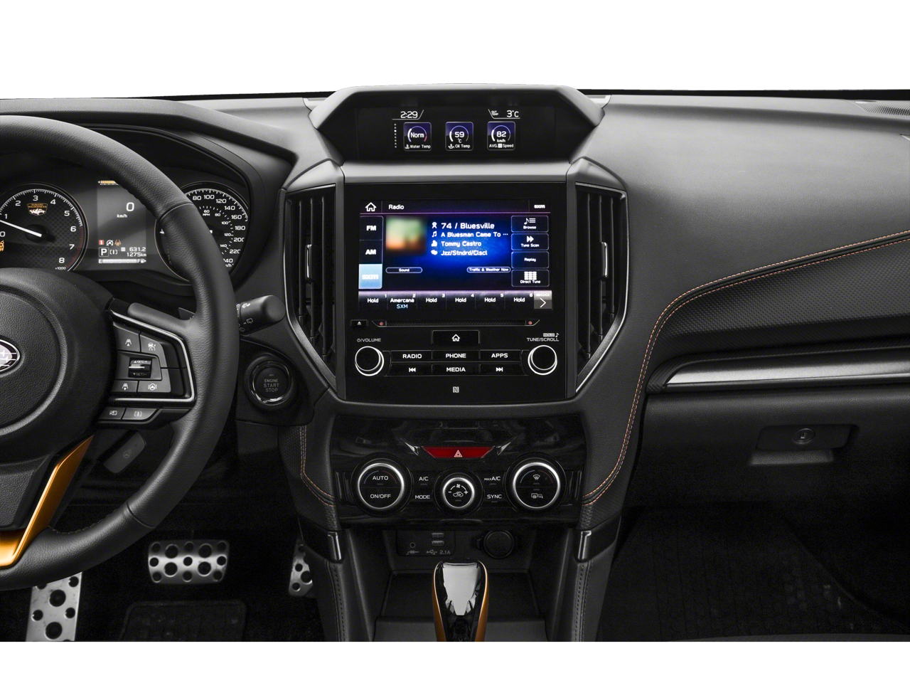 - Radio: Subaru Starlink 8.0" Multimedia Plus System -inc: AM/FM stereo HD Radio w/single-disc CD player, MP3/WMA/CRR/RW file capability, multi-touch gesture high resolution display screen, voice activated controls, Bluetooth® audio streaming, hands-free phone connectivity and hands-free SMS text messaging connectivity (refer to subaru.com for cell phone compatibility), Near Field Communication (NFC), iPod control capability, SiriusXM All Access radio and Travel Link (4 months free trial/subscription required after), smartphone integration for AHA, Android Auto, Apple CarPlay, Pandora and Starlink cloud applications (refer to subaru.com for app availability), USB and Over The Air (OTA) audio system update, steering wheel controls for audio and Bluetooth®, 6 speakers, 3.5mm auxiliary input jack and dual USB A input/charge ports