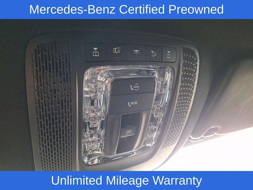 13 Speakers, 21 AMG® Twin 5-Spoke Wheels, 4-Wheel Disc Brakes, ABS brakes, Adaptive suspension, Air Conditioning, Alloy wheels, AM/FM radio: SiriusXM, Anti-whiplash front head restraints, Apple CarPlay®/Android Auto®, Auto High-beam Headlights, Auto tilt-away steering wheel, Auto-dimming door mirrors, Auto-dimming Rear-View mirror, Auto-leveling suspension, Automatic temperature control, Axle Ratio: TBD, Brake assist, Brushed Aluminum Trim, Bumpers: body-color, Compass, Delay-off headlights, Driver door bin, Driver vanity mirror, Dual front impact airbags, Dual front side impact airbags, Electronic Stability Control, Emergency communication system: eCall Emergency System, Exterior Parking Camera Rear, Four wheel independent suspension, Front anti-roll bar, Front Bucket Seats, Front Center Armrest, Front dual zone A/C, Front reading lights, Fully automatic headlights, Garage door transmitter: HomeLink, Heated door mirrors, Heated front seats, Heated Power Front Seats w/Driver Memory, High Performance Tires, Illuminated entry, Knee airbag, Leather steering wheel, Low tire pressure warning, MB-Tex Dashboard & Door Panels, Memory seat, Nappa Leather Seat Trim, Navigation system: MBUX, Occupant sensing airbag, Outside temperature display, Overhead airbag, Panic alarm, Passenger door bin, Passenger vanity mirror, Power adjustable front head restraints, Power door mirrors, Power driver seat, Power Liftgate, Power moonroof: Panorama, Power passenger seat, Power steering, Power windows, Premium audio system: MBUX, Radio data system, Radio: MBUX 12.3 Media Display w/Touchscreen, Rain sensing wipers, Rear anti-roll bar, Rear fog lights, Rear reading lights, Rear seat center armrest, Rear window defroster, Remote keyless entry, Security system, Speed control, Speed-sensing steering, Speed-Sensitive Wipers, Split folding rear seat, Spoiler, Sport steering wheel, Steering wheel memory, Steering wheel mounted audio controls, Tachometer, Telescoping steering wheel, Tilt steering wheel, Traction control, Trip computer, Turn signal indicator mirrors, Ventilated Front Seats, Ventilated front seats, Weather band radio.