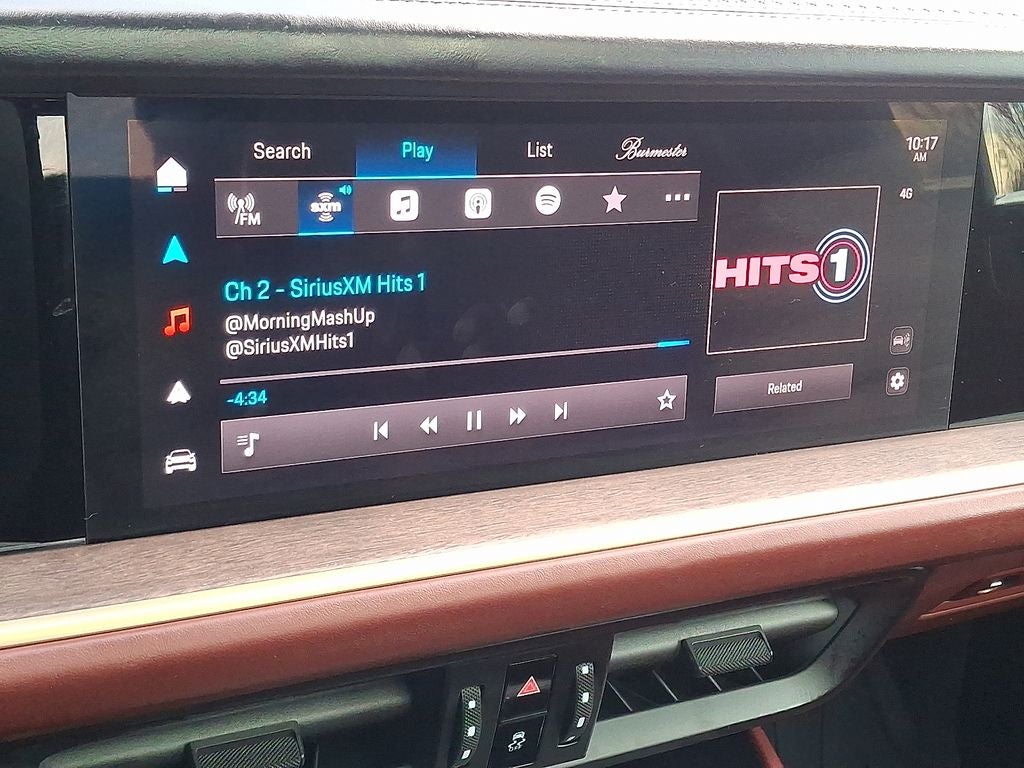 - Radio: Porsche Communication Management (PCM) -inc: navigation module, smartphone compartment w/wireless charging (up to 15W), voice control, BOSE surround sound system w/14 loudspeakers including subwoofer, 14 amplifier channels and a total output of 710 watts, smartphone integration (both Apple CarPlay and Android Auto are supported) and SiriusXM w/360L (w/3 month trial subscription)